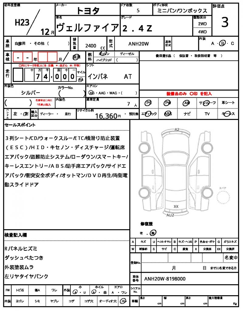 2011 TOYOTA VELLFIRE 2.4Z