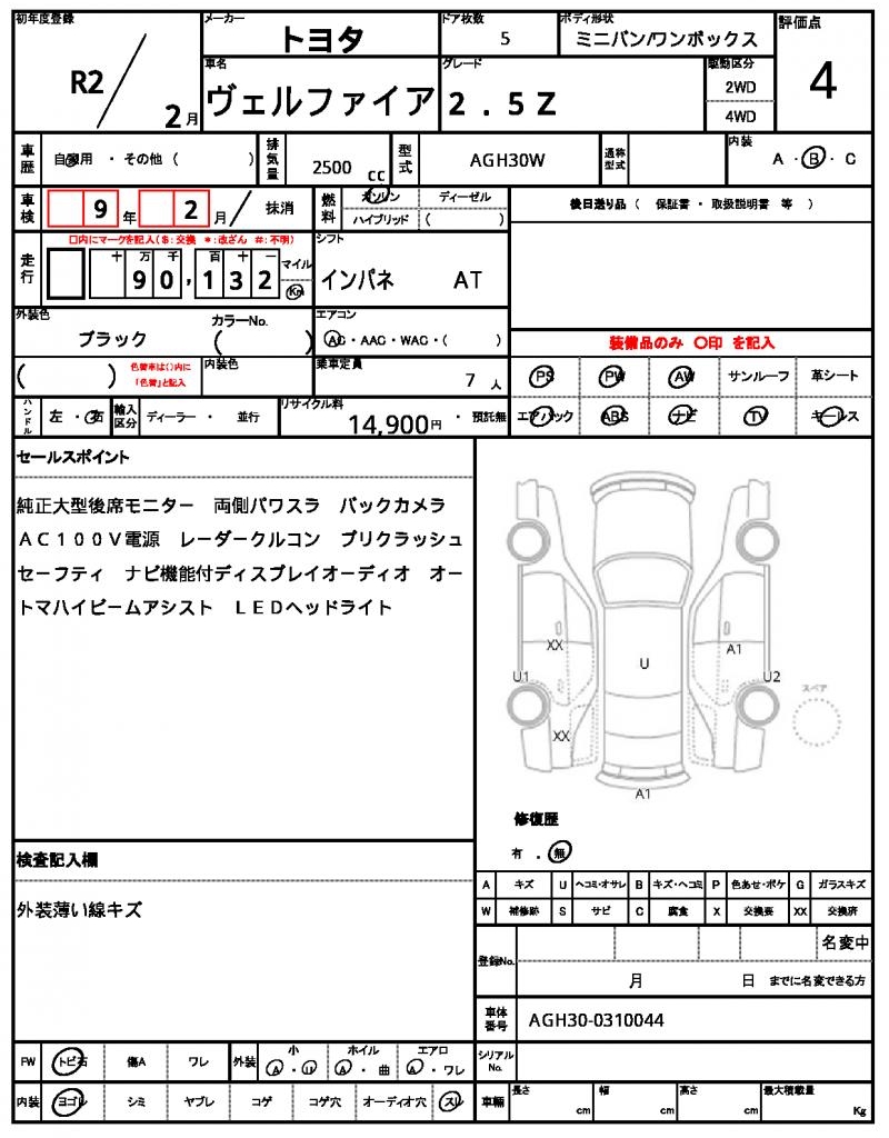 2020 TOYOTA VELLFIRE 2.5Z