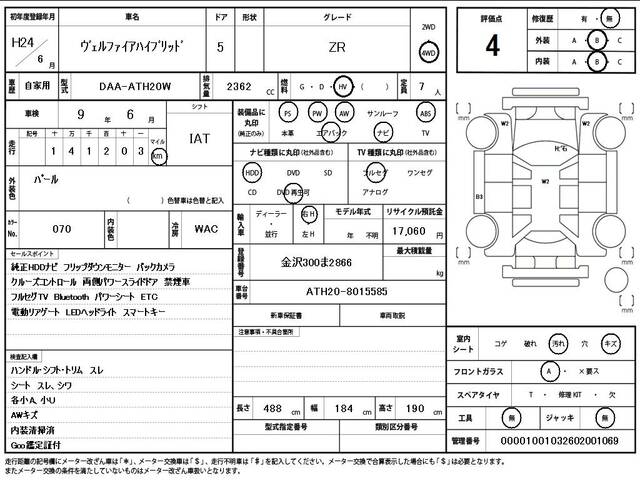 2012 TOYOTA VELLFIRE HYBRID