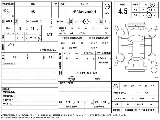 2013 LEXUS HS