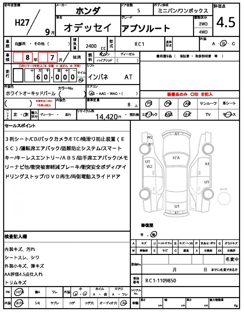 2015 HONDA ODYSSEY ABSOLUTE