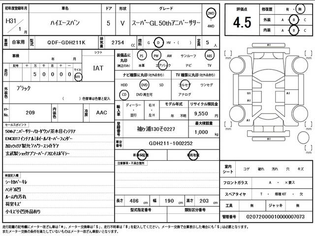 2019 TOYOTA HIACE VAN
