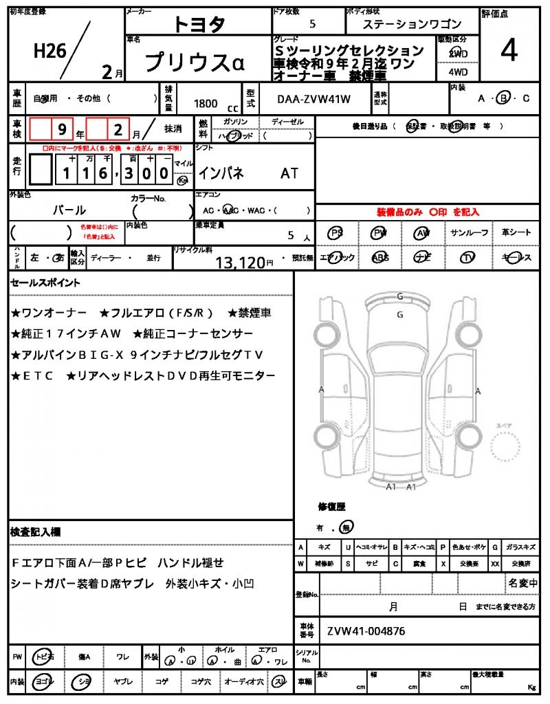 2014 TOYOTA PRIUS ALPHA