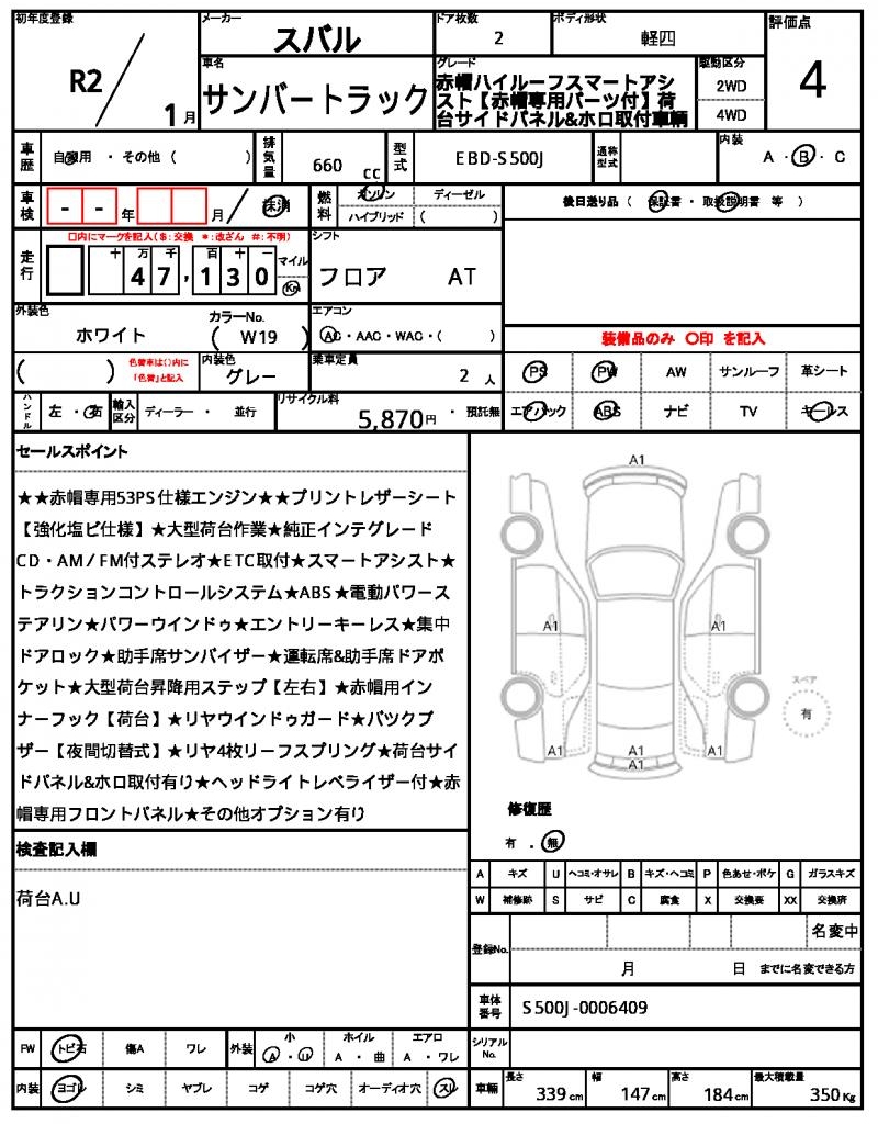 2020 SUBARU SAMBAR TRUCK