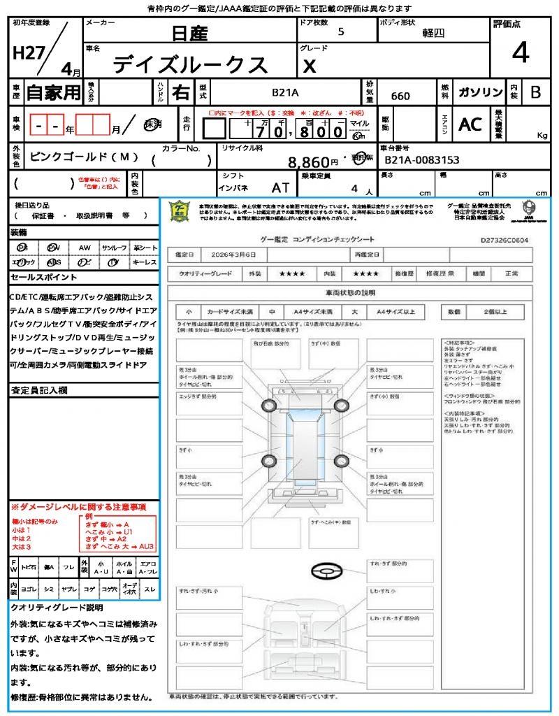 2015 NISSAN DAYZ ROOX