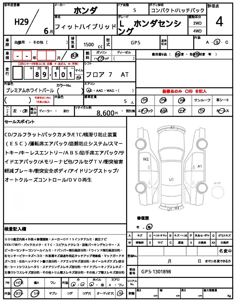 2017 HONDA FIT HYBRID L HONDA SENSING