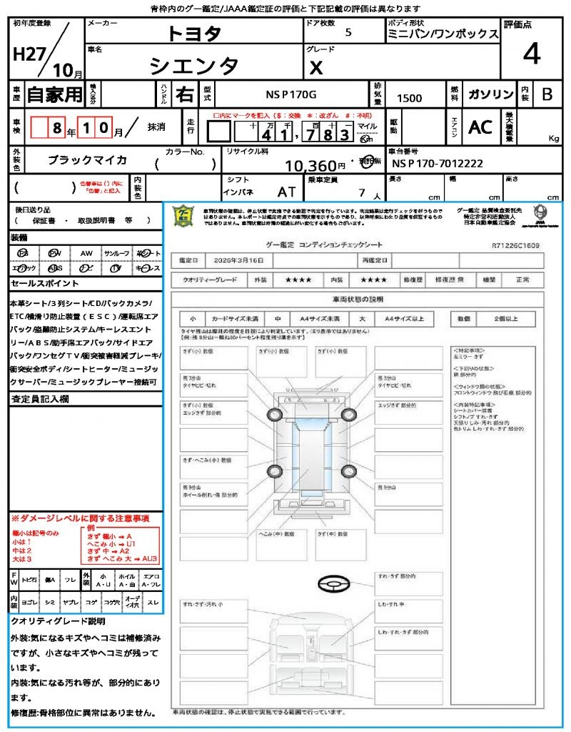 2015 TOYOTA SIENTA X