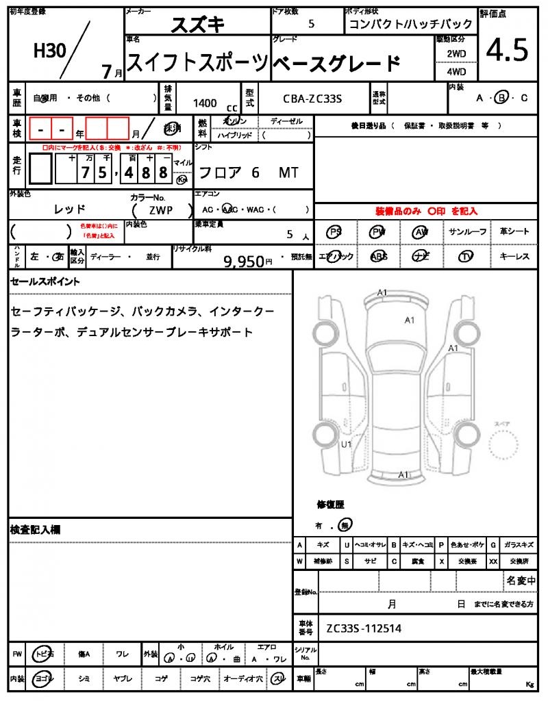 2018 SUZUKI SWIFT SPORT