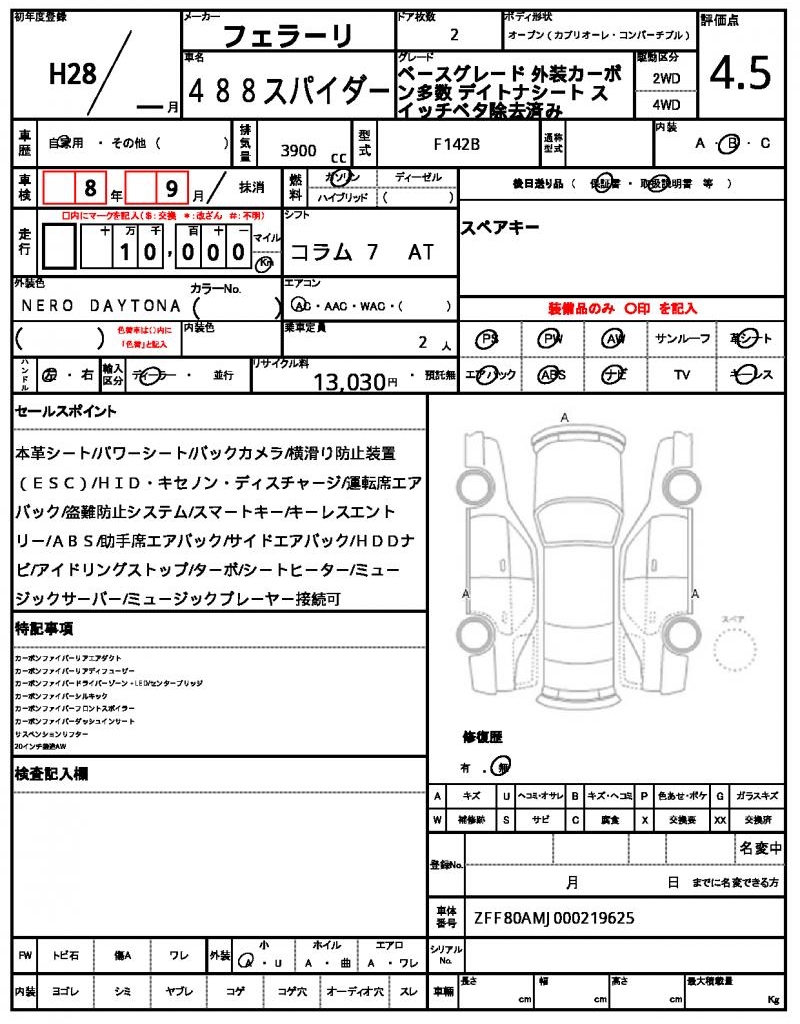 2016 FERRARI 488 SPIDER (Left Hand Drive)