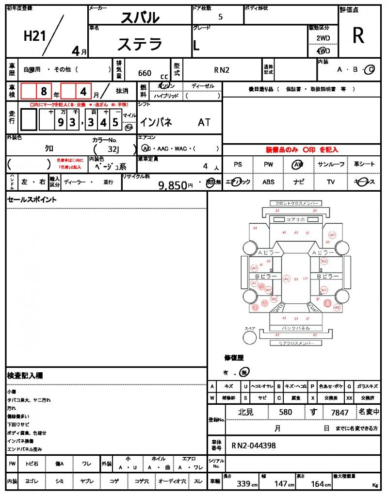 2009 SUBARU STELLA