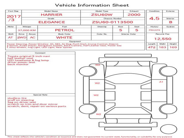 2017 TOYOTA HARRIER ( LEXUS RX300) ELEGANCE