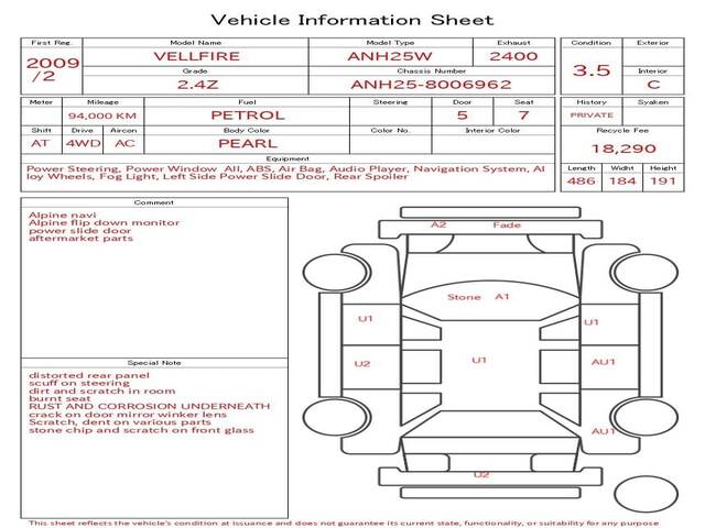 2009 TOYOTA VELLFIRE 2.4Z