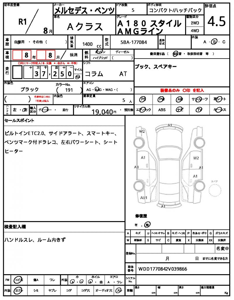 2019 MERCEDES BENZ A-CLASS
