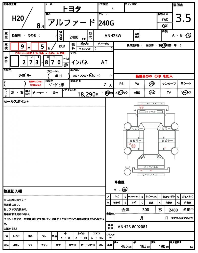 2008 TOYOTA ALPHARD 240G