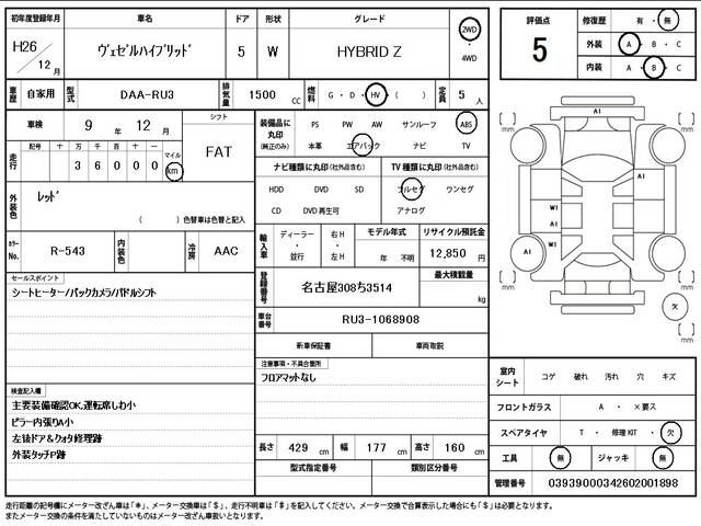 2014 HONDA VEZEL HYBRID Z