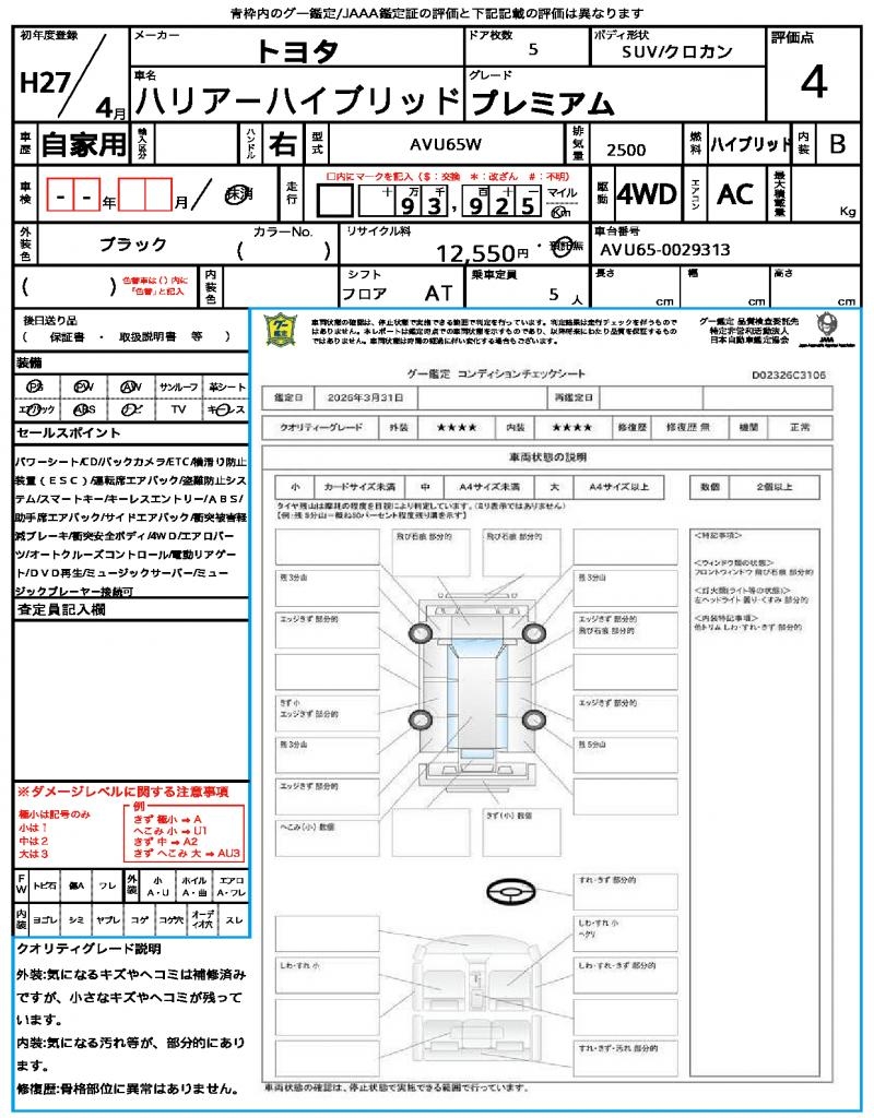 2015 TOYOTA HARRIER HYBRID PREMIUM