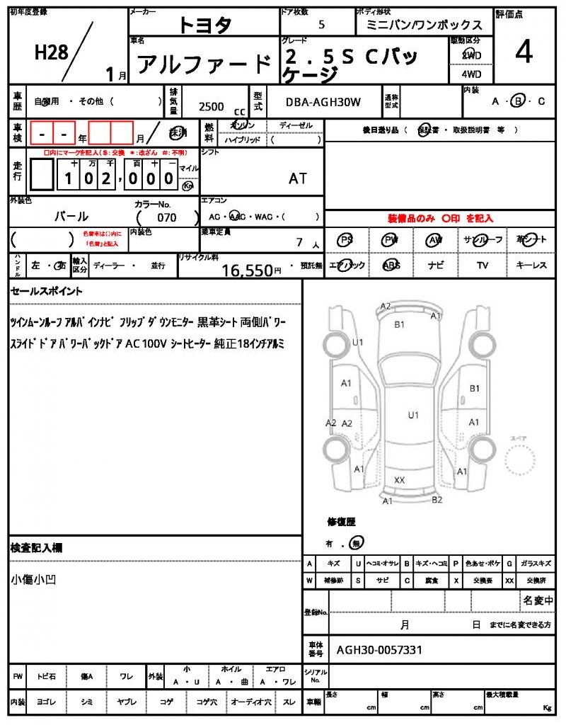 2016 TOYOTA ALPHARD
