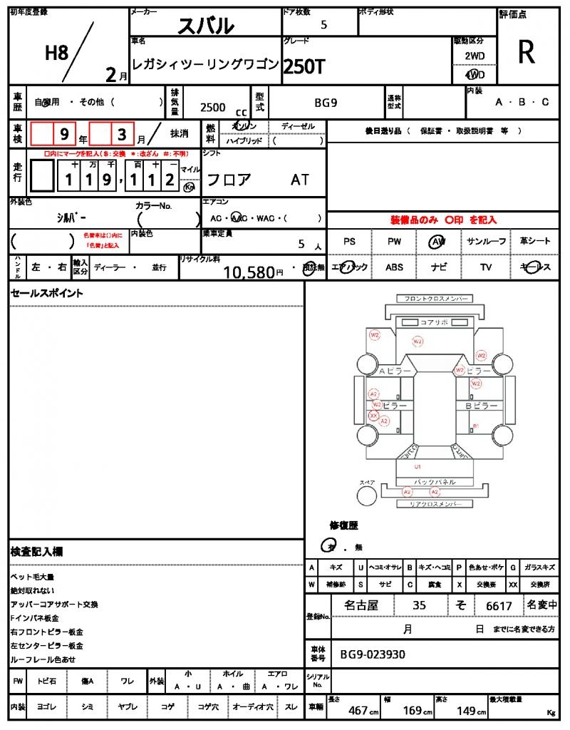 1996 SUBARU LEGACY TOURING WAGON 250T