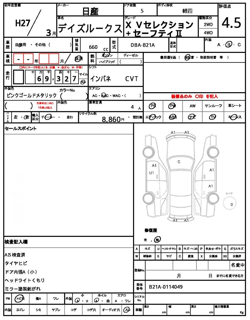 2015 NISSAN DAYZ ROOX