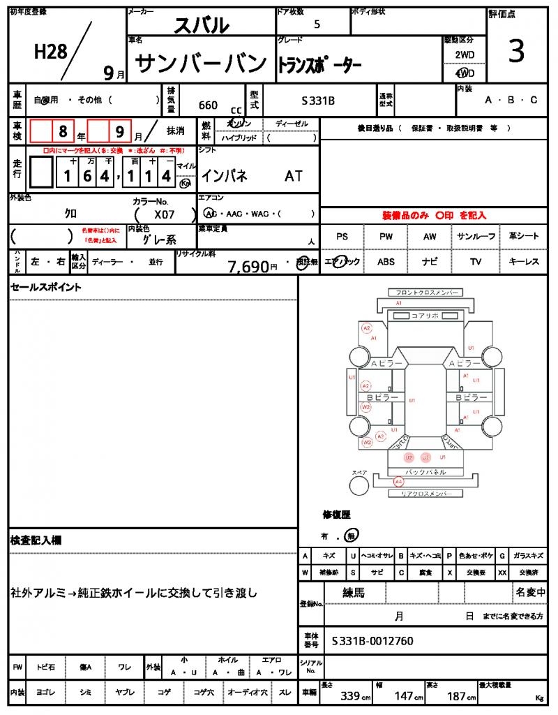 2016 SUBARU SAMBAR VAN
