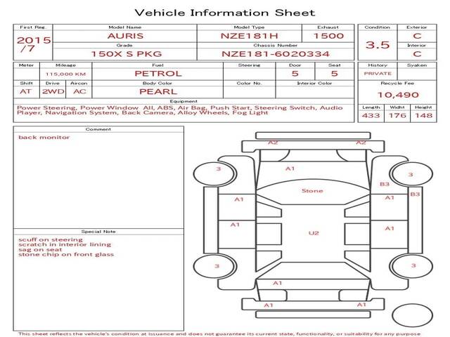 2015 TOYOTA AURIS 150X S PKG