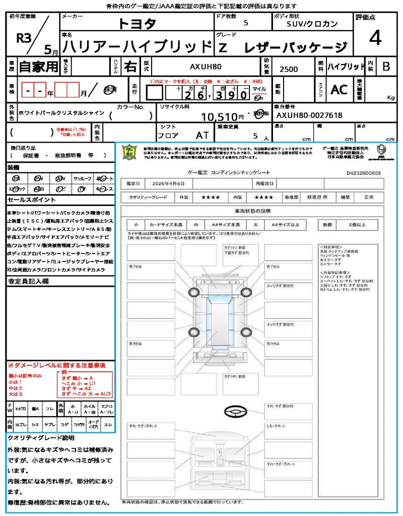 2021 TOYOTA HARRIER HYBRID Z LEATHER PKG