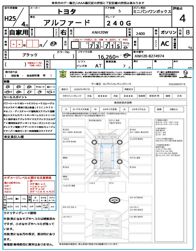2013 TOYOTA ALPHARD 240G
