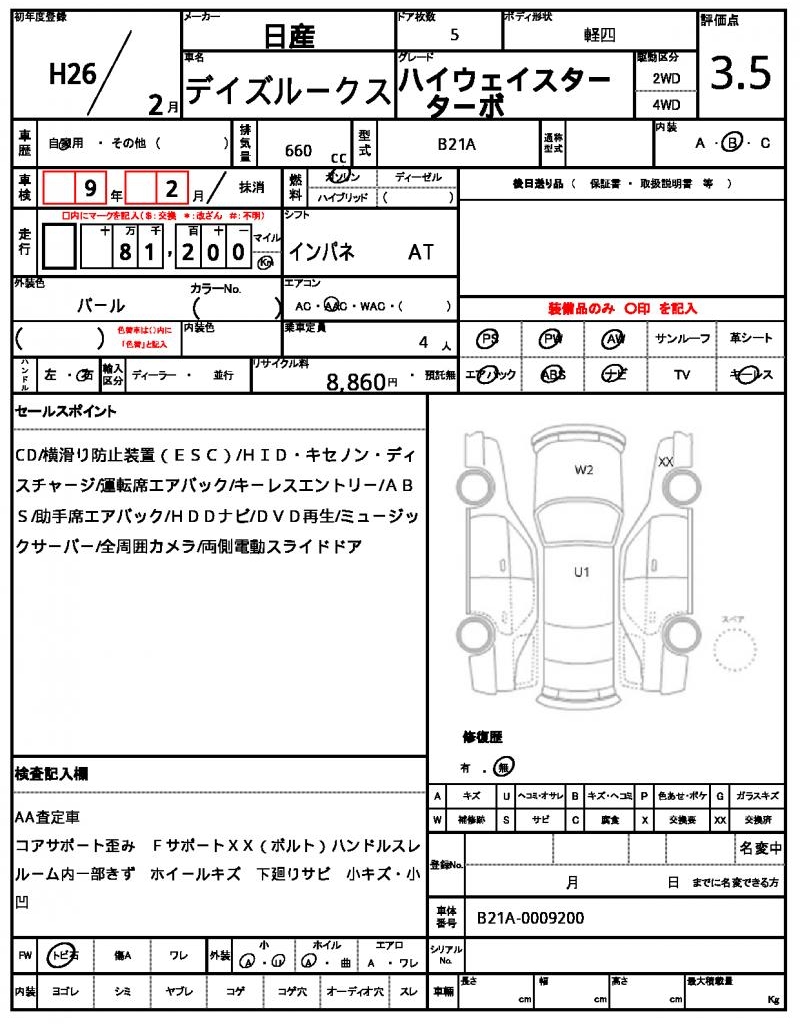 2014 NISSAN DAYZ ROOX