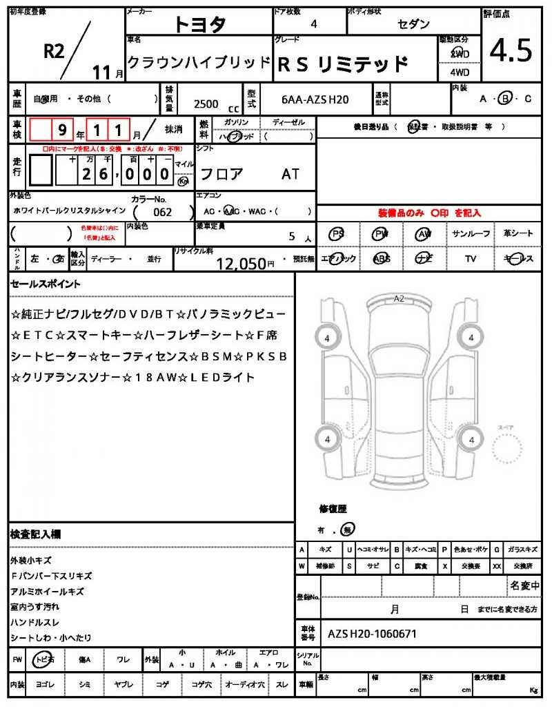 2020 TOYOTA CROWN HYBRID