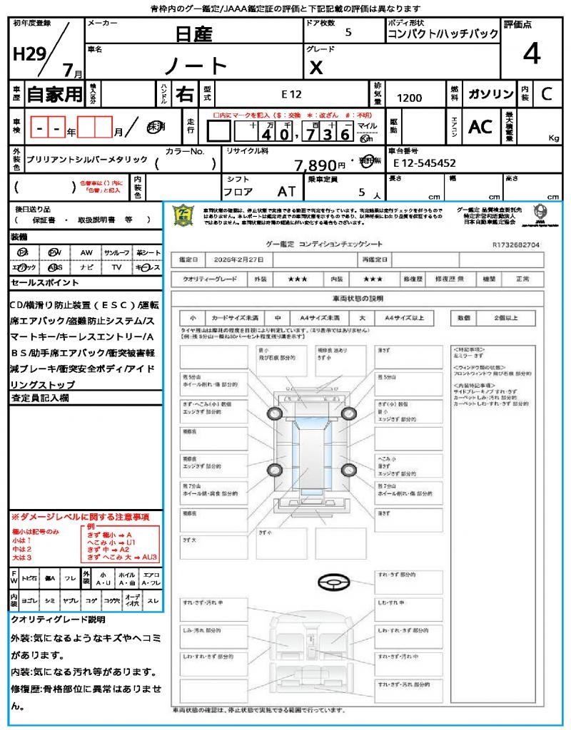 2017 NISSAN NOTE X