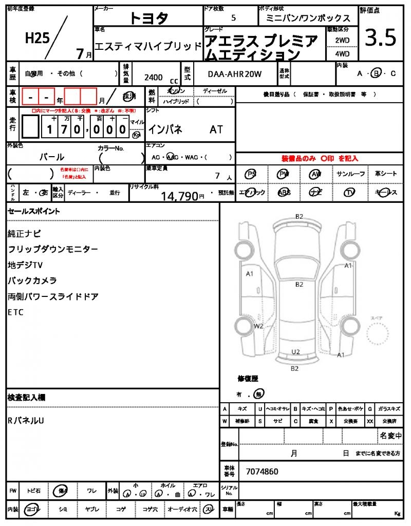 2013 TOYOTA ESTIMA HYBRID
