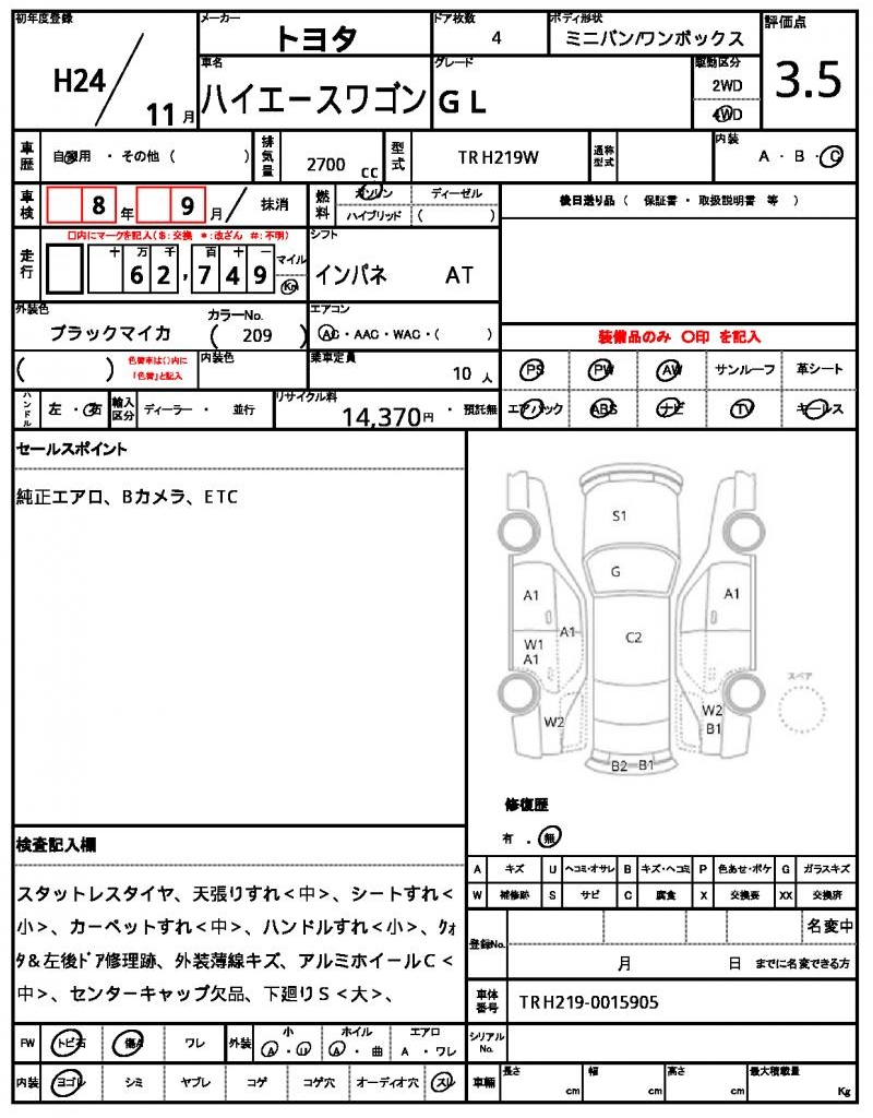 2012 TOYOTA HIACE WAGON GL