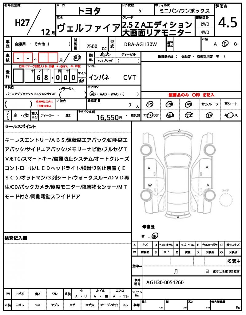 2015 TOYOTA VELLFIRE