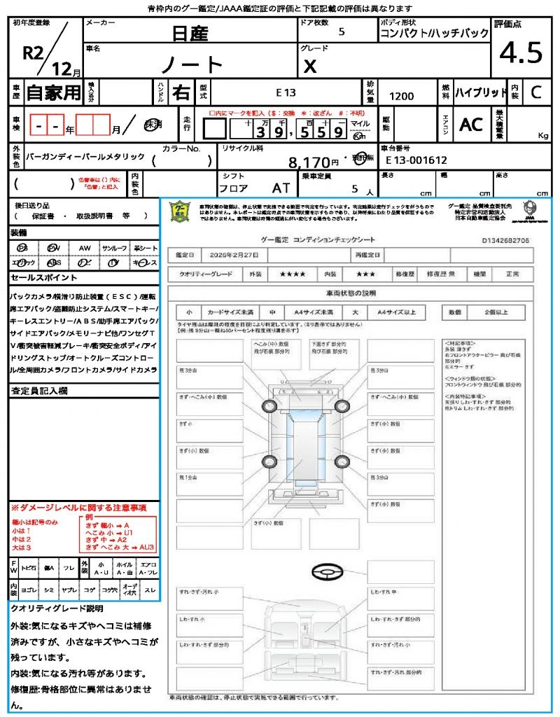2020 NISSAN NOTE X
