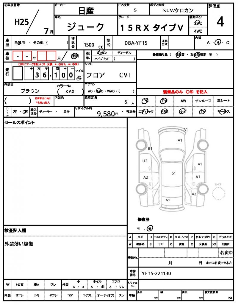 2013 NISSAN JUKE 15RX TYPE V