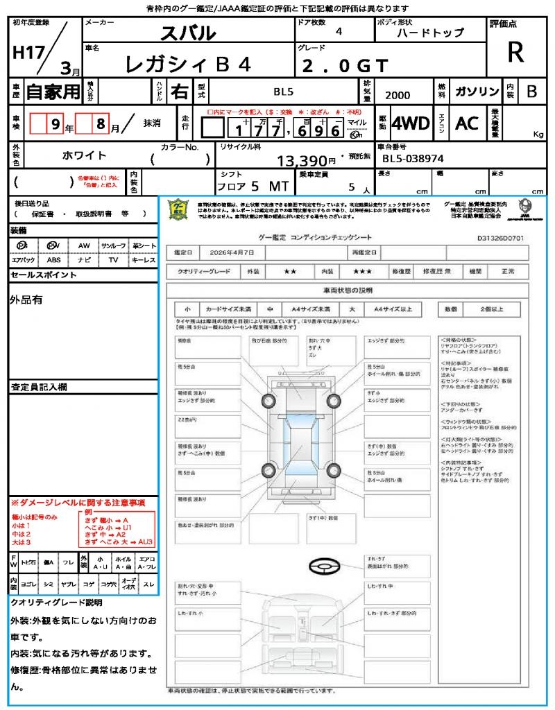 2005 SUBARU LEGACY B4 2.0GT