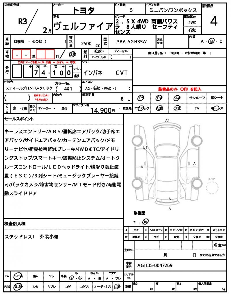 2021 TOYOTA VELLFIRE 2.5X