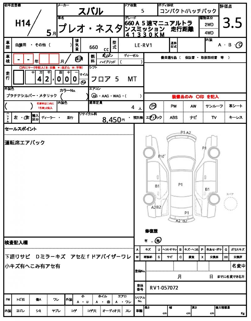 2002 SUBARU PLEO NESTA