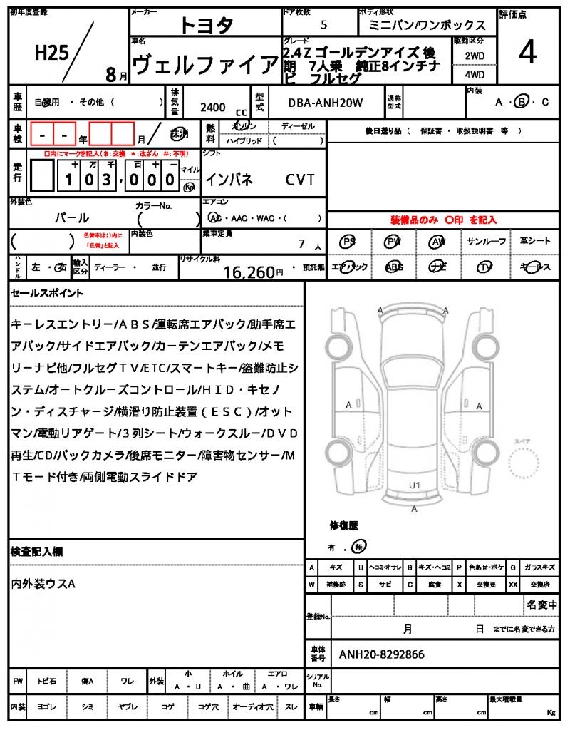 2013 TOYOTA VELLFIRE