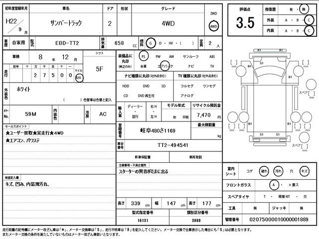 2010 SUBARU SAMBAR TRUCK