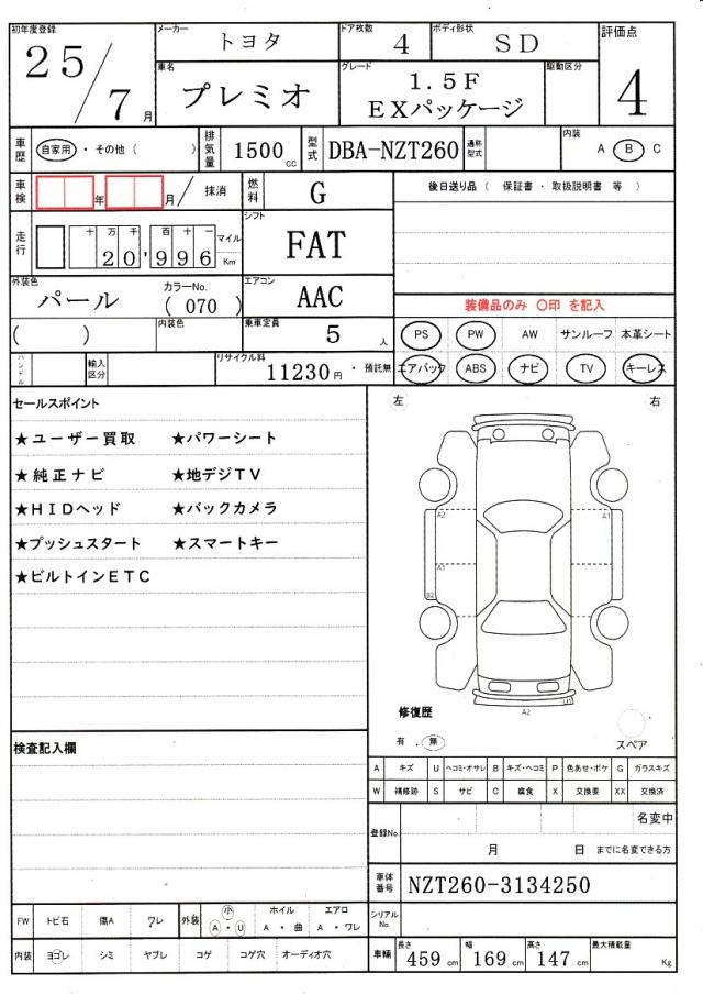 2013 TOYOTA PREMIO 1.5F EX PACKAGE