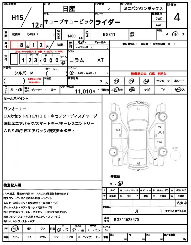 2003 NISSAN CUBE CUBIC RIDER