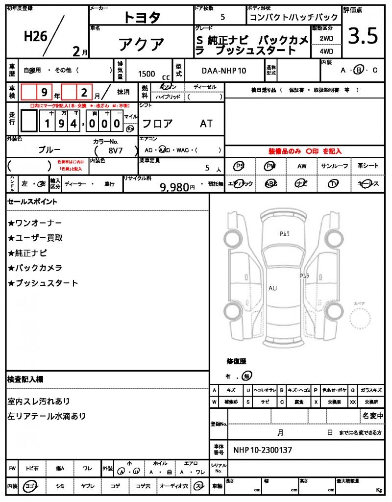2014 TOYOTA AQUA