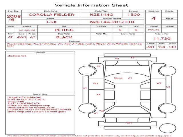 2008 TOYOTA COROLLA FIELDER 1.5X
