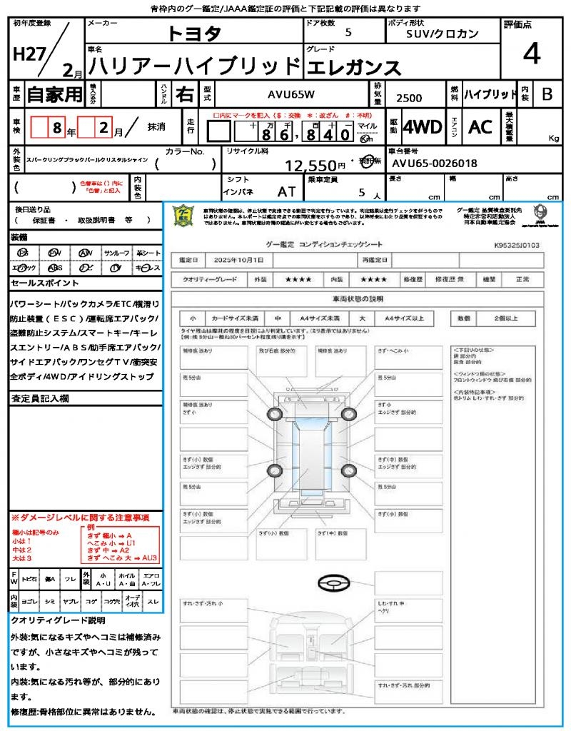 2015 TOYOTA HARRIER HYBRID