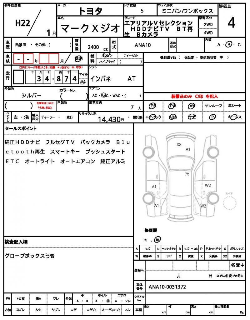 2010 TOYOTA MARK X ZIO