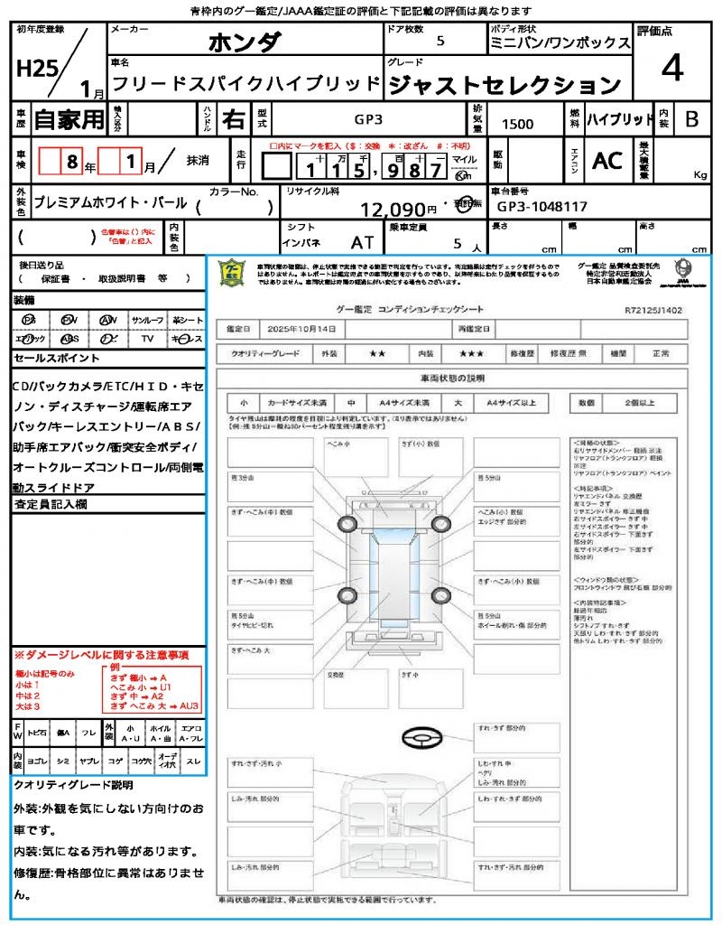 2013 HONDA FREED SPIKE HYBRID