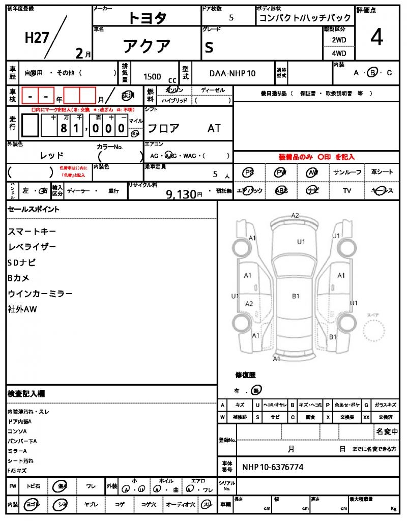 2015 TOYOTA AQUA S
