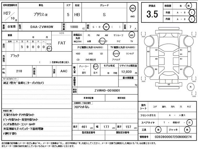 2015 TOYOTA PRIUS ALPHA S
