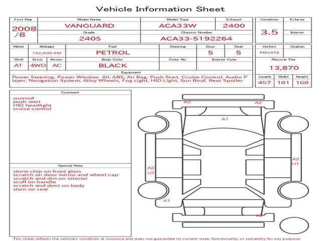 2008 TOYOTA VANGUARD 240S